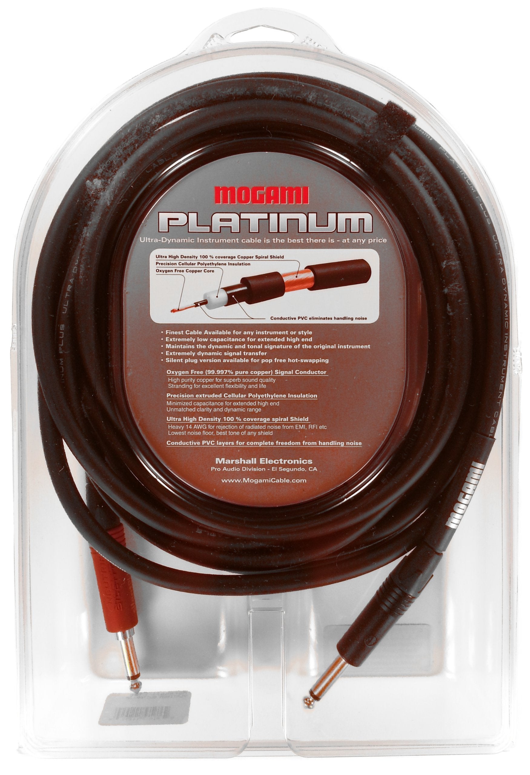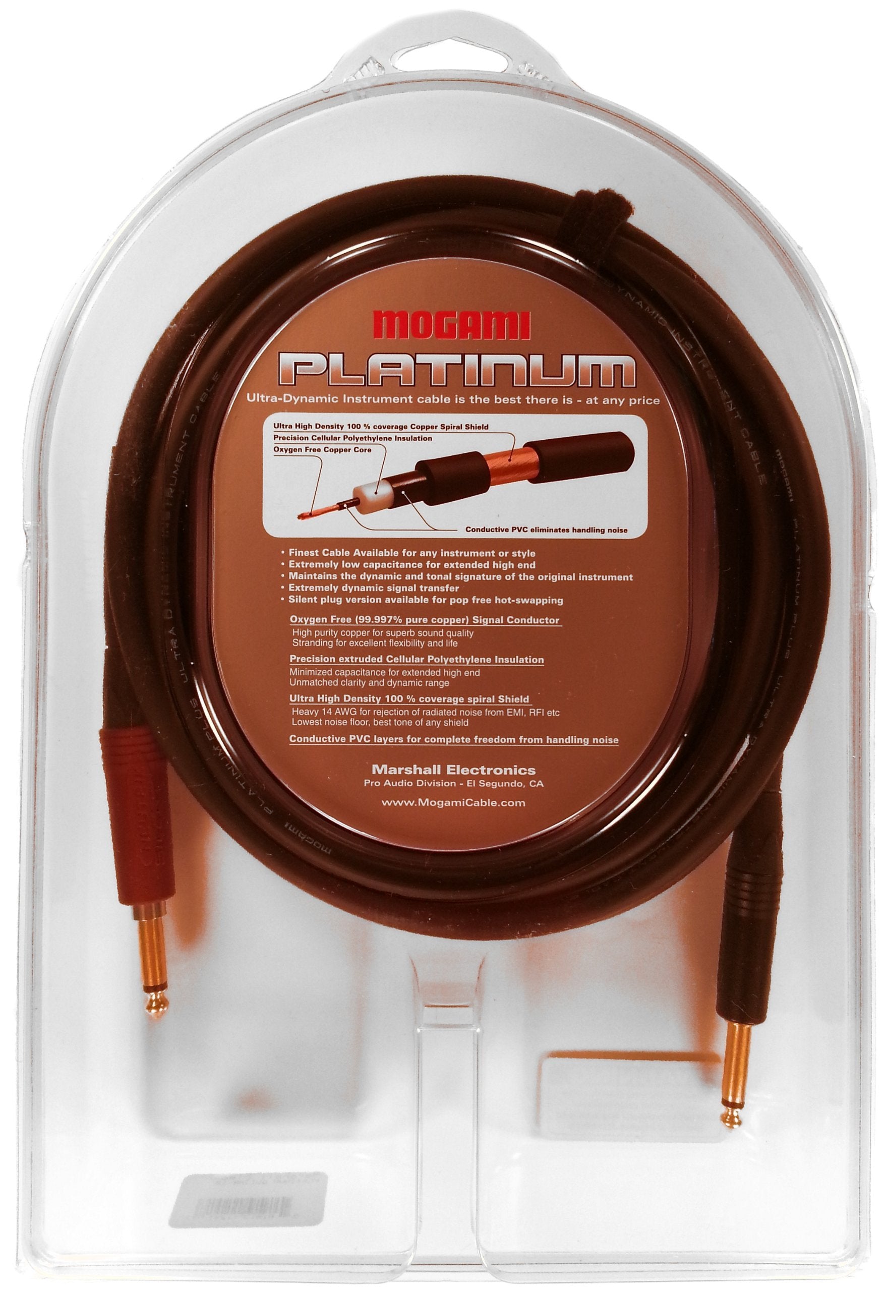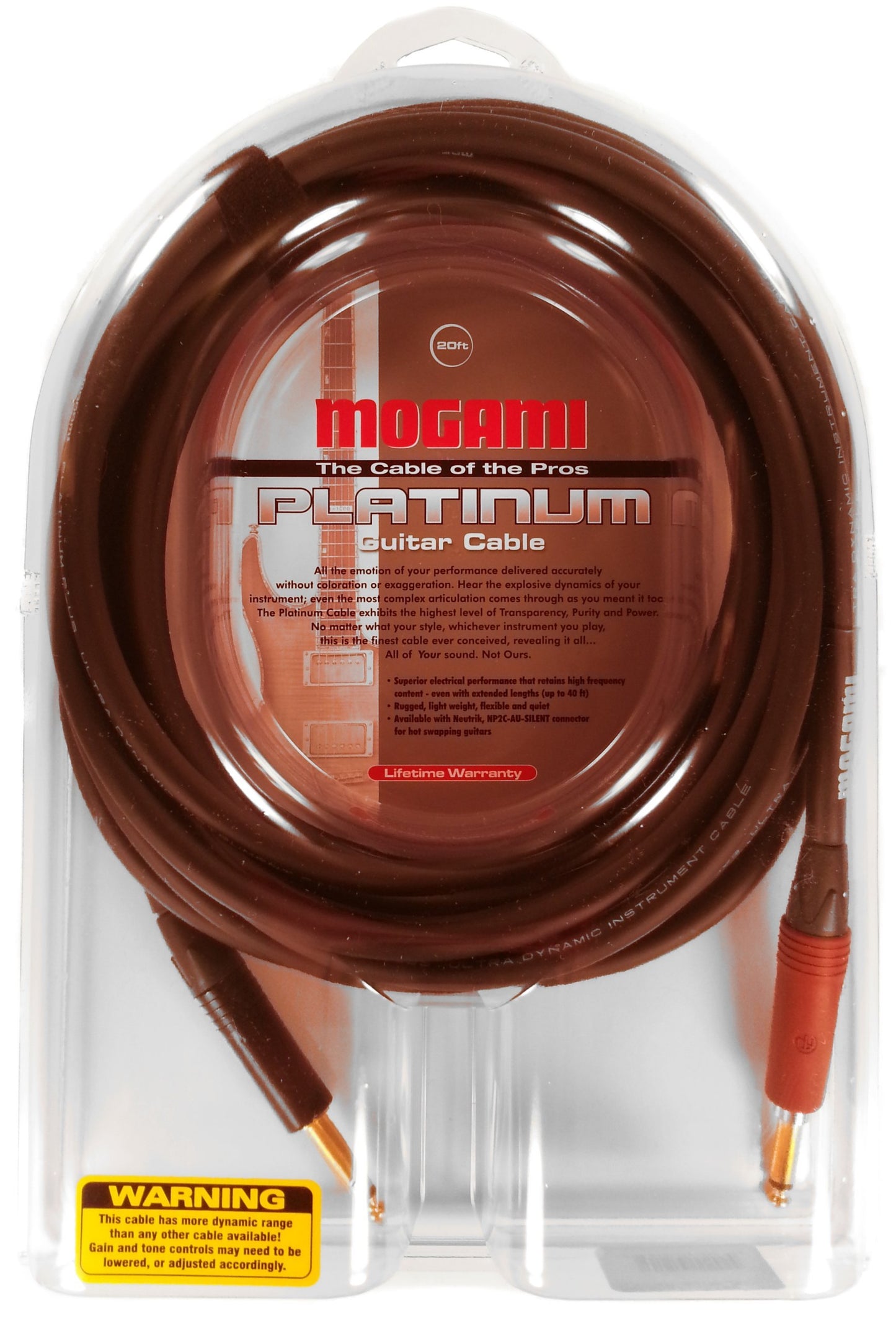 Mogami Platinum Guitar Instrument Cable, 1/4" TS Male Plugs, Gold Contacts, Straight Connectors with silentPLUG