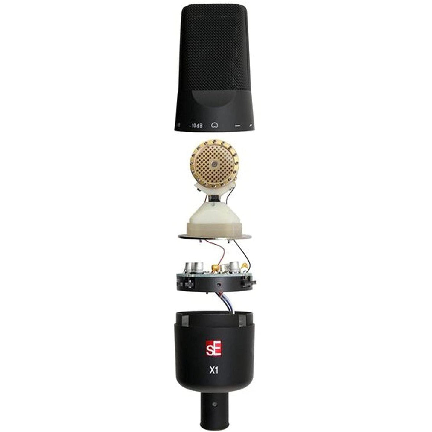 X1S Vocal Pack. The X1S is a refined version of sE's best-selling X1, tuned for advanced performance. With the highest dynamic range and SPL handling capabilities in its class, along with expanded features that dramatically increase its flexibility, the X1 S has been improved in every way relative to the original, even in terms of its affordability.. Just like its predecessor, the X1 S utilizes a hand-made condenser capsule, meticulously constructed and tuned in sE’s capsule room by technicians with decades of experience. This results in a capsule built like the world’s finest musical instruments, and a capsule truly up to the challenge of recording them. Where the original X1 was powerful, the redesigned electronics of the X1 S take its performance to a whole new level, giving it the highest dynamic range in its class. Its internal redesign also allows for improved sensitivity, dramatically increased SPL handling (up to 160dB!), and a huge reduction in self-noise. Attenuation The -10 dB and -20 dB pad switches provide extended dynamic range, enabling a wide range of applications and close-mic techniques for even the loudest instruments...think super-heavy electric guitars, fortissimo brass instruments, and heavy-footed kick drums. Low-cut Filters Selectable at either 80Hz or 160Hz, these two filters help eliminate low-frequency rumble or footfall noise, as well as help compensate for excessive bass (proximity effect) with close-mic techniques. Chassis Unlike the cheaply constructed bodies of some entry-level microphones, the X1 S's all-metal chassis provides efficient rejection of any electrical interference and noise. The high-quality finish ensures a great look for years to come. A gold-plated XLR connector ensures loss-free, reliable signal connection.
